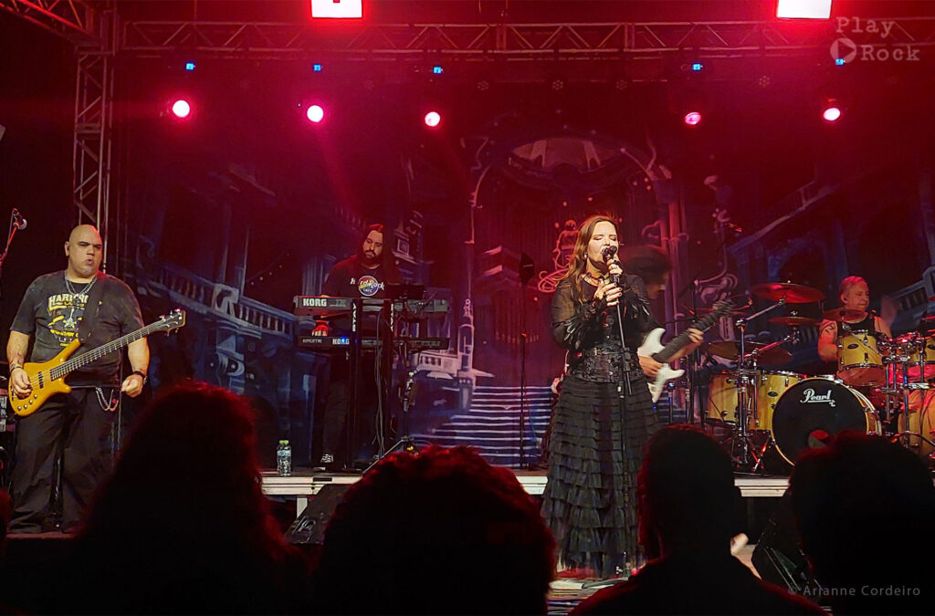 Durante a execução de “Sahara”, Anette Olzon surpreendeu ao chamar ao palco a vocalista Lya Seffrin para um dueto poderoso e emocionante. A química entre as duas vozes foi instantânea, resultando em uma performance ovacionada pelos fãs presentes.